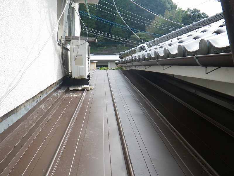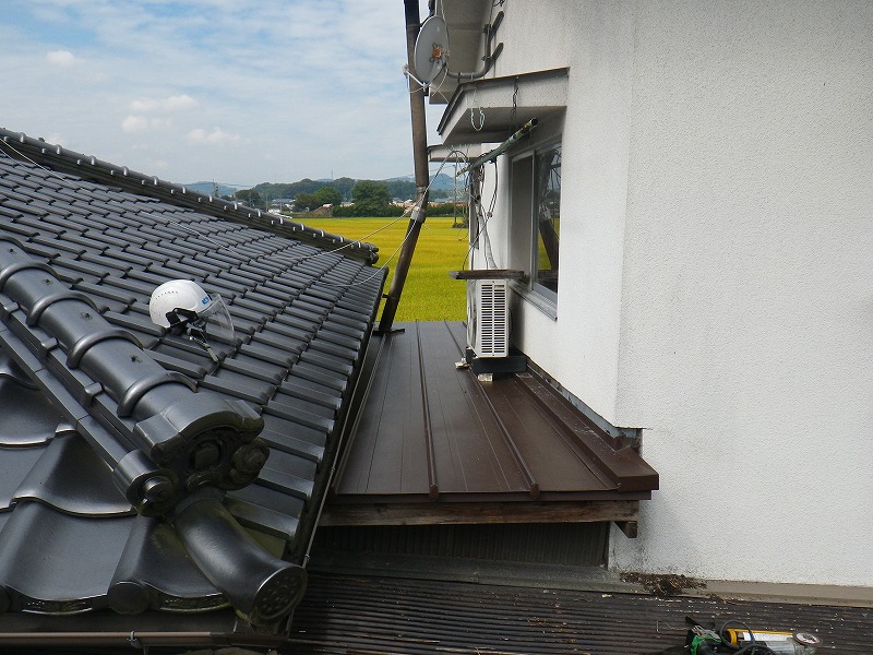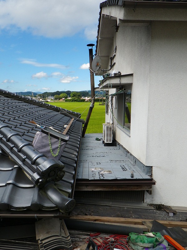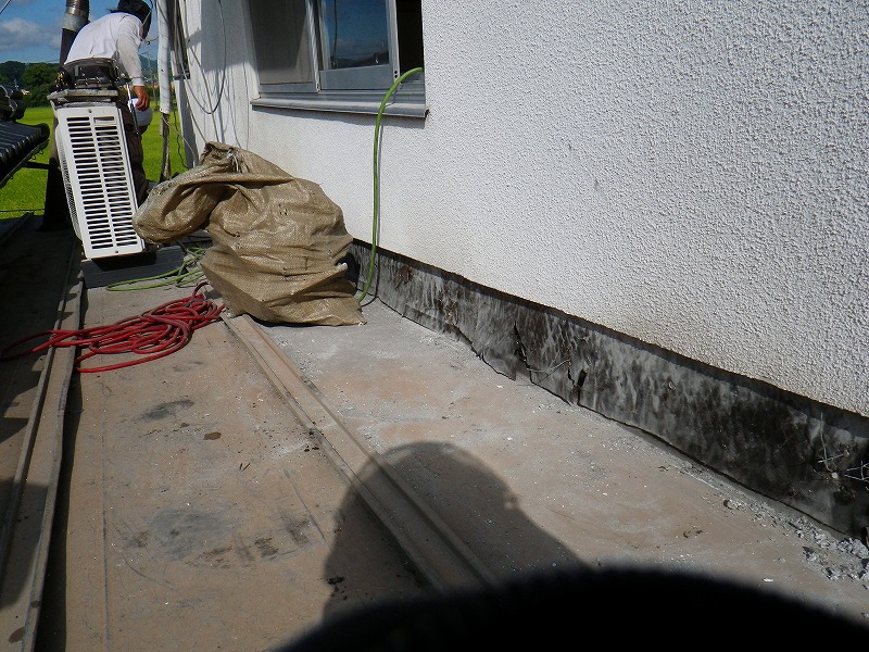 瓦棒屋根の立ち上がりが壁の中に入っているので壁のモルタルを撤去していきます~(写真右側)