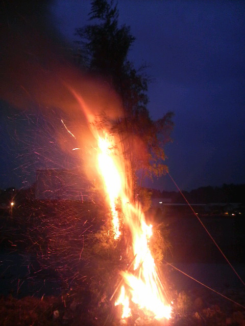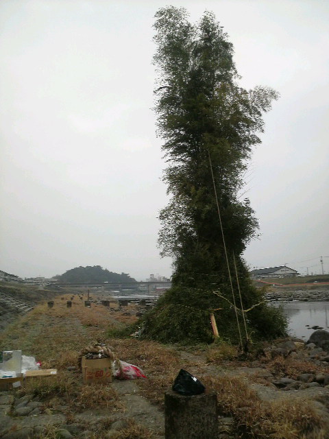 今年もよろしくお願いします! 1月10日(日) 今年も鬼火焚きの時期になりました 中釣町では壮年の皆様のご協力により鬼火焚きが行われています 午後1時(当日)竹を切りだしに~ 15m程に伸びた竹を切り出し、トラックに載せられる様に切ります トラックいっぱいに詰め込んだら河川敷へ~ この時点で体力的にカナリシンドイ・・・今年はチョイト鍛えんとイカン! バイパスを下ってくるとすでに別部隊の竹切り班が 作業を進めていました いや~天に伸びた竹が壮観です! ※ 画像をクリックして拡大してください ※ 皆さんの協力で今年も無事に完成です! サ~ビールヲイタダキマスカ!! この景色を観ながらのビールは格別に美味い!! (スベテハコノイッシュンノタメニ!・・・) 午後6時、5.6年生により点火が行われました 子供会・壮年会の皆さんから豚汁・焼きそばが提供され長蛇の列が! ここで町内のみなさんと新年の挨拶をかわし~ 大きくなった高校生達に会えるのも楽しいもんです 皆当たり前のように自分の身長を越して行くんよな~ヤレンナ~ (オトシダマハ ヤランヨ~) 皆さんにとっても素晴らしい一年でありますように! まずは右のカテゴリーから気になる項目を選んでください