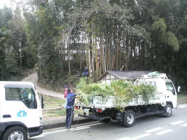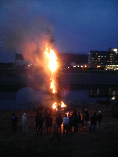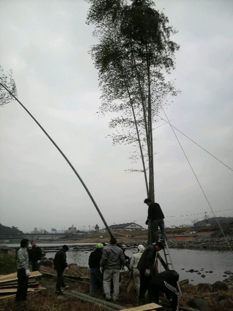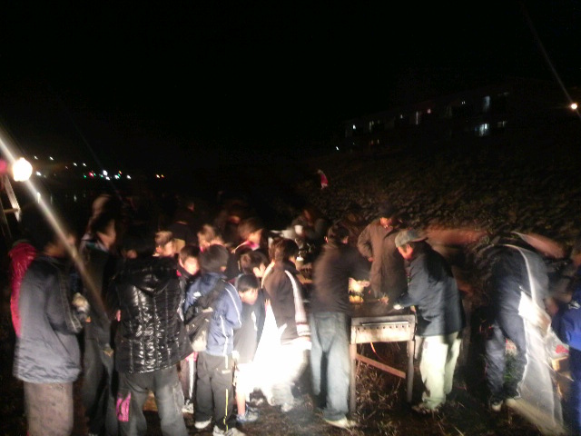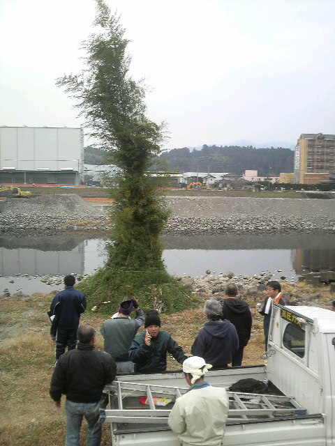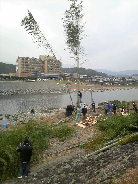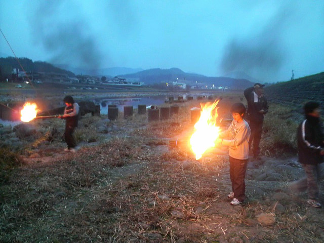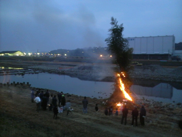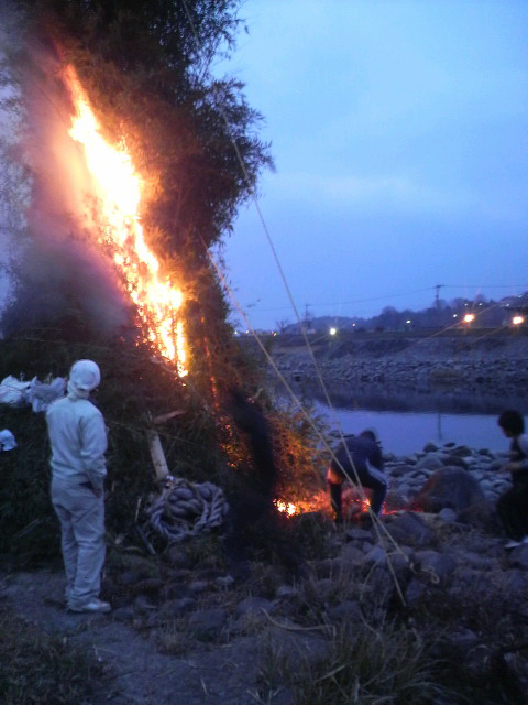 今年もよろしくお願いします! 1月10日(日) 今年も鬼火焚きの時期になりました 中釣町では壮年の皆様のご協力により鬼火焚きが行われています 午後1時(当日)竹を切りだしに~ 15m程に伸びた竹を切り出し、トラックに載せられる様に切ります トラックいっぱいに詰め込んだら河川敷へ~ この時点で体力的にカナリシンドイ・・・今年はチョイト鍛えんとイカン! バイパスを下ってくるとすでに別部隊の竹切り班が 作業を進めていました いや~天に伸びた竹が壮観です! ※ 画像をクリックして拡大してください ※ 皆さんの協力で今年も無事に完成です! サ~ビールヲイタダキマスカ!! この景色を観ながらのビールは格別に美味い!! (スベテハコノイッシュンノタメニ!・・・) 午後6時、5.6年生により点火が行われました 子供会・壮年会の皆さんから豚汁・焼きそばが提供され長蛇の列が! ここで町内のみなさんと新年の挨拶をかわし~ 大きくなった高校生達に会えるのも楽しいもんです 皆当たり前のように自分の身長を越して行くんよな~ヤレンナ~ (オトシダマハ ヤランヨ~) 皆さんにとっても素晴らしい一年でありますように! まずは右のカテゴリーから気になる項目を選んでください