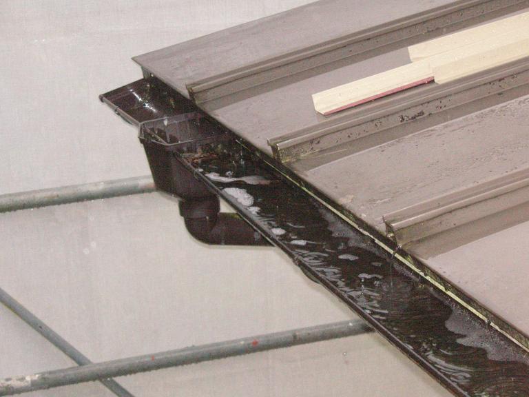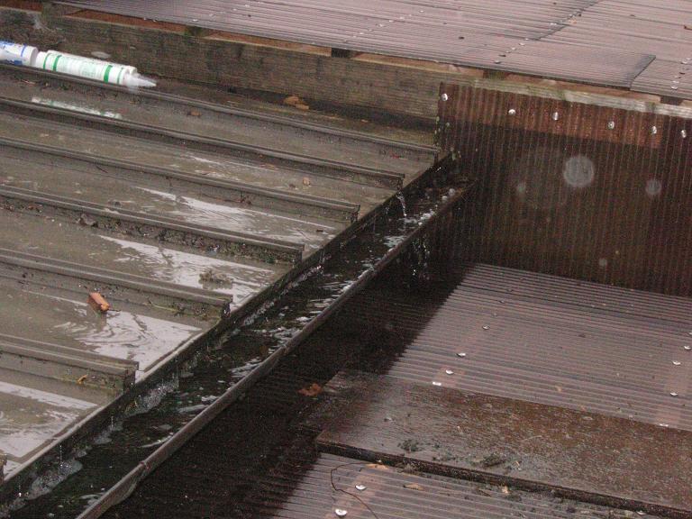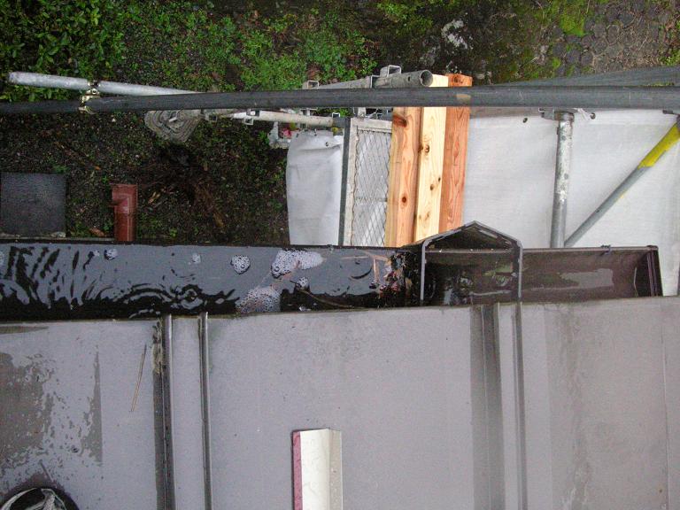 雨といにコケ、ゴミ等が詰まって樋から雨水があふれています・・・ 真上から覗いて見ましょう~集水器から左側に雨水が溜まっています・・・ ※ 画像をクリックして確認してください ※ 別方向から~ 今にも雨水が溢れてきそうです・・・・・ 集水器が詰まっているので水上側はさらに雨水が溢れています( ↓ 画像) 溢れた雨水が壁等に浸透して雨漏りをおこしたり木材を腐らせたりするのです・・・・・ そうなる前にゴミをシッカリ取り除いて雨水のはけを良くしましょう! と、ここで今回初めての試み! 「動画」でチェックして頂ましょう! ゴミを取り除いて勢い良く雨水が流れていく様子が分かります!